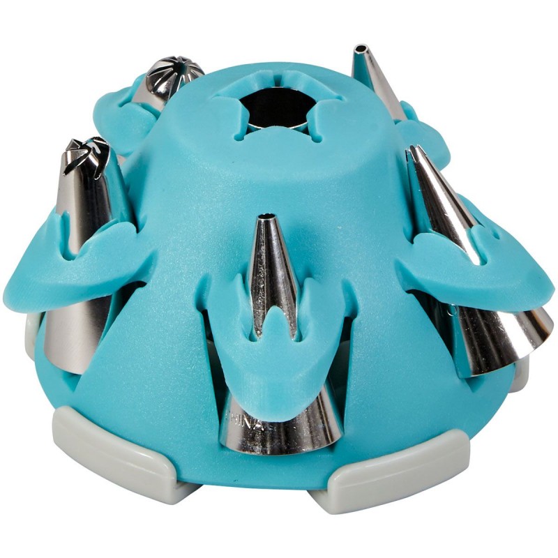 Set 6 konic za dekoriranje piškotov v priročni embalaži za shranjevanje in hkrati pranje v pomivalnem stroju.