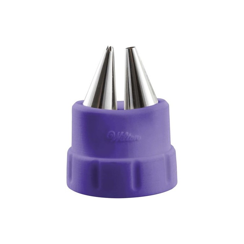 Wilton Duo coupler je poseben nastavek/adapter za dekoracijo v katerega lahko hkrati vpneš kar 2 različni konici in tako ustvari povsem svojevrstne in inovativne dekoracije.
