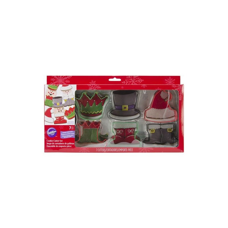 V kompletu je 7 različnih modelčkov: 3 različni klobuki, 3 različni škornji in še okrogli izrezovalnik za izrezovanje trupa.