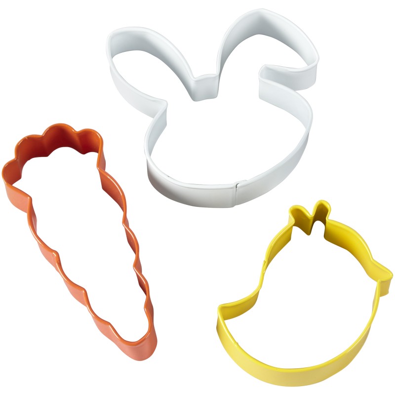 Komplet kovinskih modelčkov za piškote znamke Wilton v velikonočnem motivu.