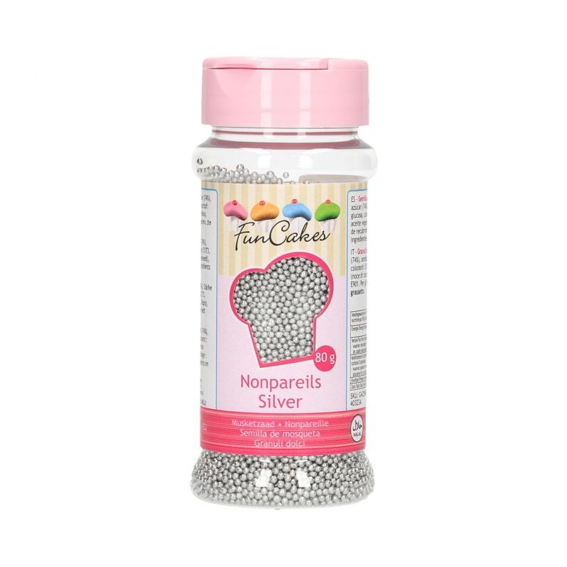 FunCakes F51600 Dekorativni posip NonPareils Silver / Srebrne perle 80 g