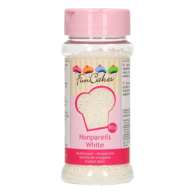FunCakes Dekorativni posip NonPareils F51515 White / Bele perle 80 g