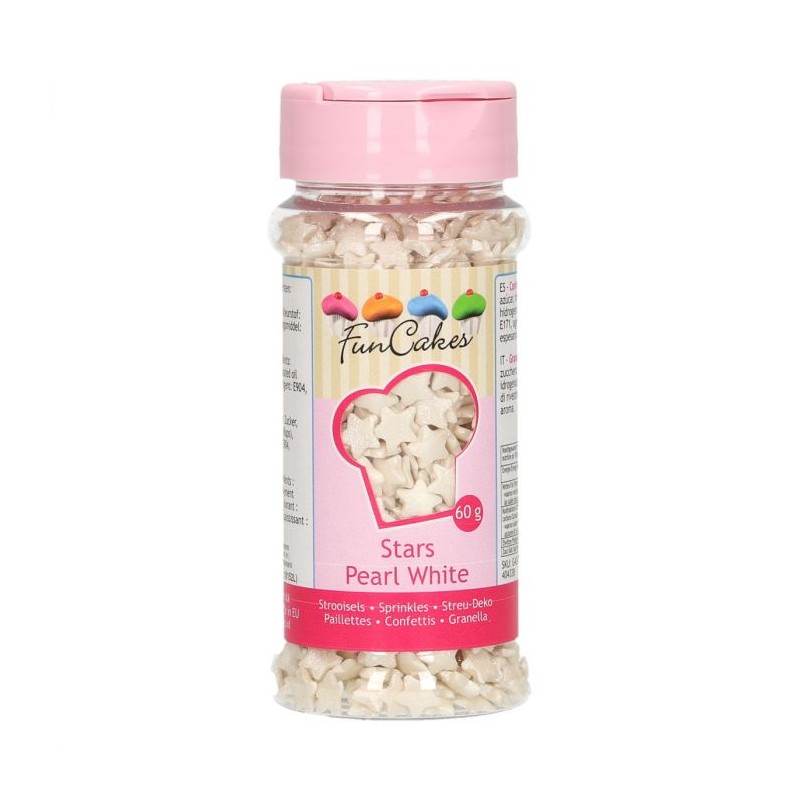 FunCakes F52670 Dekorativni posip Stars Pearl White / Bele zvezdice 55g