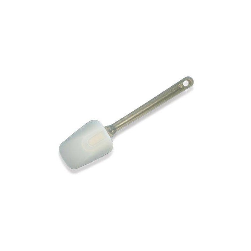 Silikonska lopatica s prozornim plastičnim držalom.