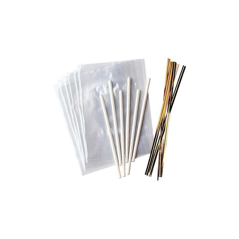 Komplet za lizike, ki vsebuje 18 palčk, 18 vrečk in 18 žičk za zavijanje.